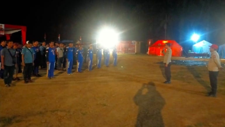 PELALAWAN- (RS) Kapolsek Pangkalan Lesung AKP Liston Sihombing SH, MH berikan materi dalam pelatihan Taruna Siaga Bencana (Tagana) di Kecamatan Pangkalan Lesung, Senin (26/9/2022) malam.