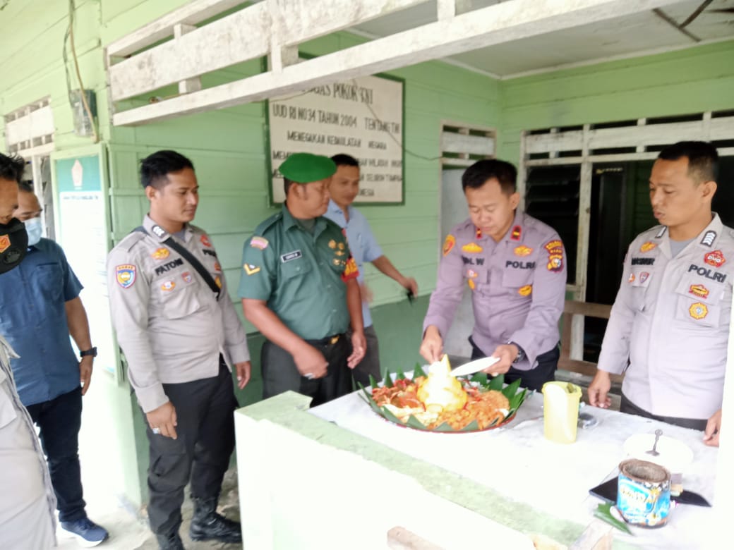 Dirgahayu TNI ke77, Polsek Kerumutan Potong Tumpeng di Pos Koramil 15/Kerumutan