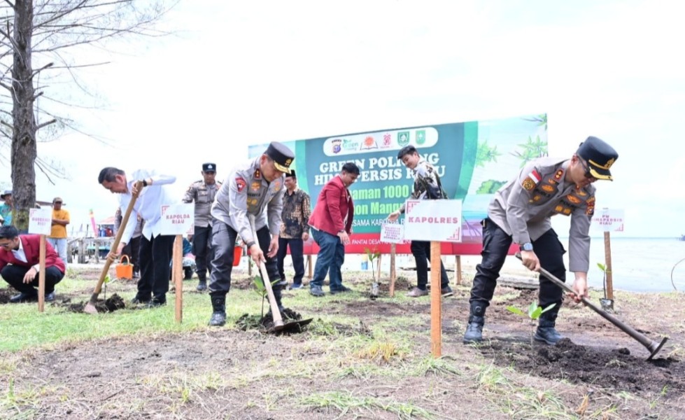 BENGKALIS,(Riausindo.com) - Kapolda Riau Irjen Herry Heryawan,SH.,MH.,M.Hum bersama jajaran Polda Riau dan ratusan mahasiswa dari Himpunan Mahasiswa Persatuan Islam (Hima Persis) melaksanakan aksi tanam mangrove di pesisir Pantai Prapat Tunggal, Kabupaten Bengkalis.