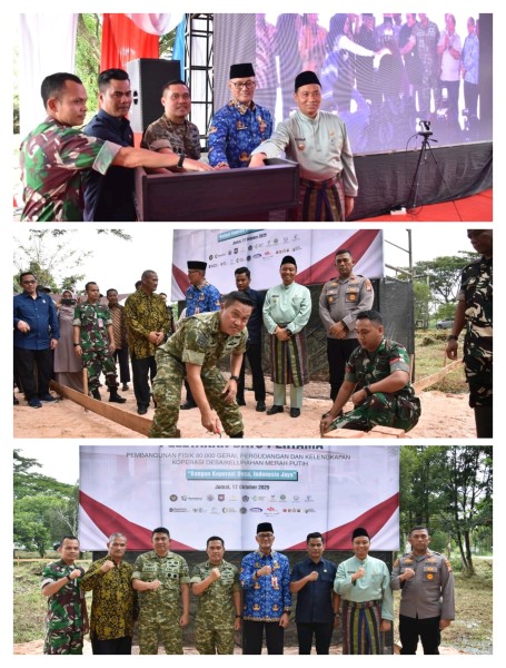 PEKANBARU(Riausindo.com)-Wujud sinergi antara TNI dan Pemerintah kembali terlihat dalam kegiatan peletakan batu pertama (groundbreaking) pembangunan Gerai dan Pergudangan Koperasi Desa Merah Putih di halaman Kantor Camat Payung Sekaki, Kota Pekanbaru. Kegiatan ini menjadi langkah nyata memperkuat perekonomian masyarakat dari tingkat desa melalui pemberdayaan koperasi, Jumat 17/10/25.