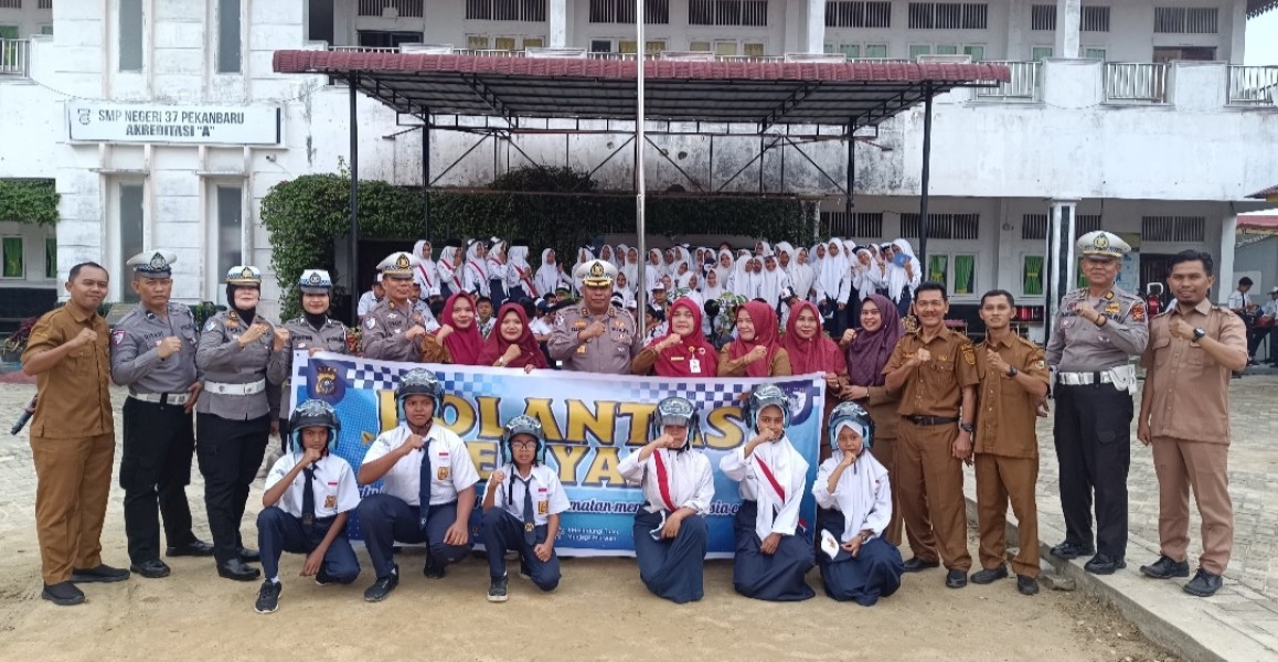 Kegiatan yang berlangsung di SMP Negeri 37 Pekanbaru, Jalan Garuda, Kelurahan Tangkerang Tengah ini menghadirkan edukasi langsung dari jajaran Ditlantas Polda Riau tentang pentingnya keselamatan berlalu lintas dan pelestarian lingkungan.