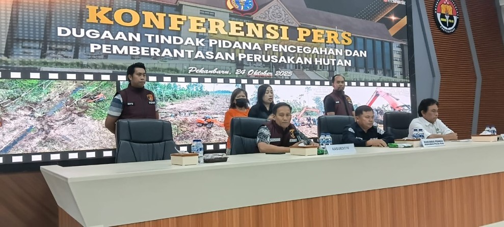 Konferensi pers penegakan hukum digelar pada Jumat, 24 Oktober 2025 di Media Center 91 Polda Riau.