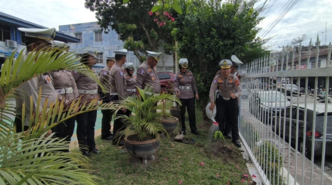 Hijaukan Mako! Ditlantas Polda Riau Gelar Aksi Tanam Pohon Wujudkan Green Policing