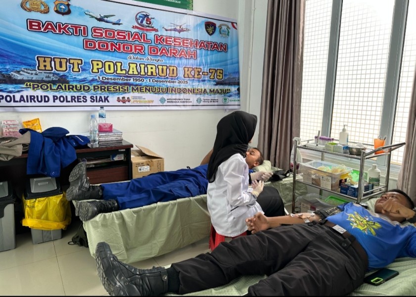 SIAK,(Riausindo.com) – Dalam semangat memperingati Hari Ulang Tahun (HUT) ke-75 Korps Kepolisian Perairan dan Udara (Polairud) Tahun 2025, Satuan Polisi Air dan Udara (Satpolairud) Polres Siak menggelar kegiatan Bakti Kesehatan Donor Darah, Rabu (12/11/2025).
