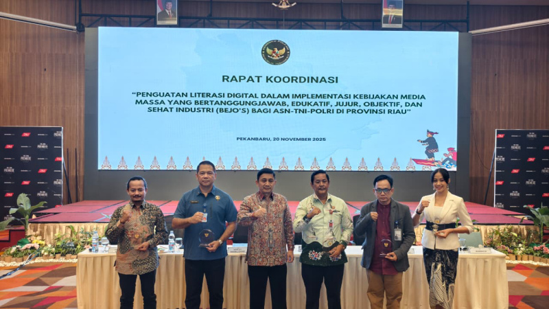 Pekanbaru,(Riausindo.com) - Program Kementerian Koordinator Bidang Politik dan Keamanan (Kemenko Polkam) yang ditugaskan oleh Menko Polkam, Jenderal TNI (Purn) Djamari Chaniago melalui Deputi Bidang Koordinasi Komunikasi dan Informasi menyelenggarakan Rapat Koordinasi Penguatan Literasi Digital dalam Implementasi Kebijakan Media Massa yang Bertanggung Jawab, Edukatif, Jujur, Objektif, dan Sehat Industri (BEJO’S) bagi Aparatur Sipil Negara, TNI, dan Polri, bertempat di Kota Pekanbaru, Provinsi Riau.