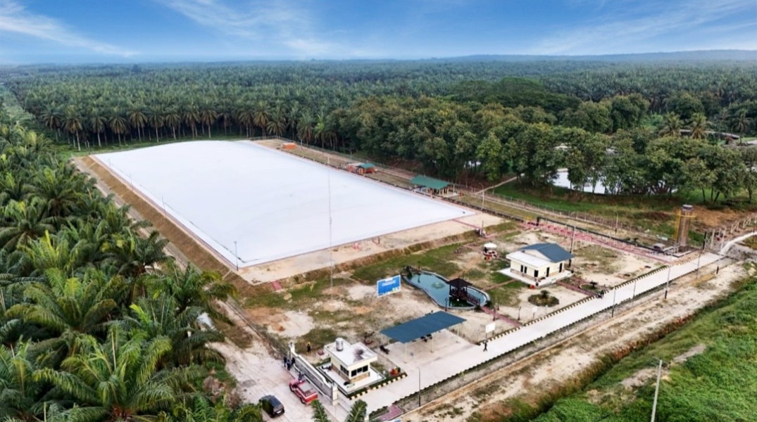 Indragiri Hulu,(Riausindo.com) – Di pagi hari yang cerah, permukaan kolam limbah Palm Oil Mill Effluent (POME) di pabrik kelapa sawit PT Tunggal Perkasa Plantations (TPP) tampak tenang. Tak ada yang berbeda di permukaan, namun di bawahnya, jutaan gelembung gas metana perlahan terperangkap dalam kubah geomembran raksasa.