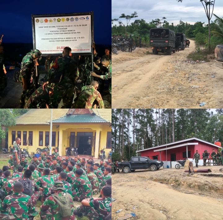 PELALAWAN,(Riausindo.com) - Satgas Pengamanan Taman Nasional Tesso Nilo (TNTN) berhasil memulihkan dan menguasai kembali sejumlah pos yang sebelumnya sempat diduduki warga. Pemulihan situasi diawali dengan briefing yang dipimpin Kasi Ops Kasrem 031/WB Letkol Inf Teguh D.R., melibatkan unsur TNI, Polri, Balai TNTN, Polhut, Intel, para Danpos, serta warga yang memberikan informasi perkembangan lapangan.Rabu 26/11/25.