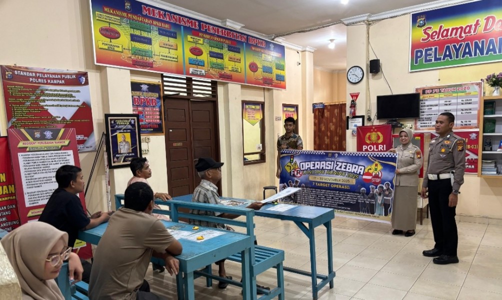 Di tengah ramainya wajib pajak yang mengurus dokumen kendaraan, Satlantas Polres Kampar justru menyapa mereka dengan edukasi tertib berlalu lintas sebagai bagian dari pelaksanaan Operasi Zebra 2025.