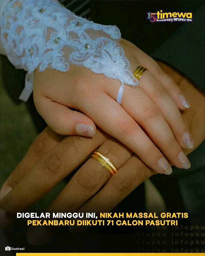 PEKANBARU, (Riausindo.com) akan menyelenggarakan nikah massal gratis yang ditaja Pemerintah Kota (Pemko) pada Minggu (7/12/2025). Kegiatan akan berlangsung di lapangan komplek Mal Pelayanan Publik (MPP) Jalan Jenderal Sudirman dan diikuti sebanyak 71 calon pasangan suami-istri.