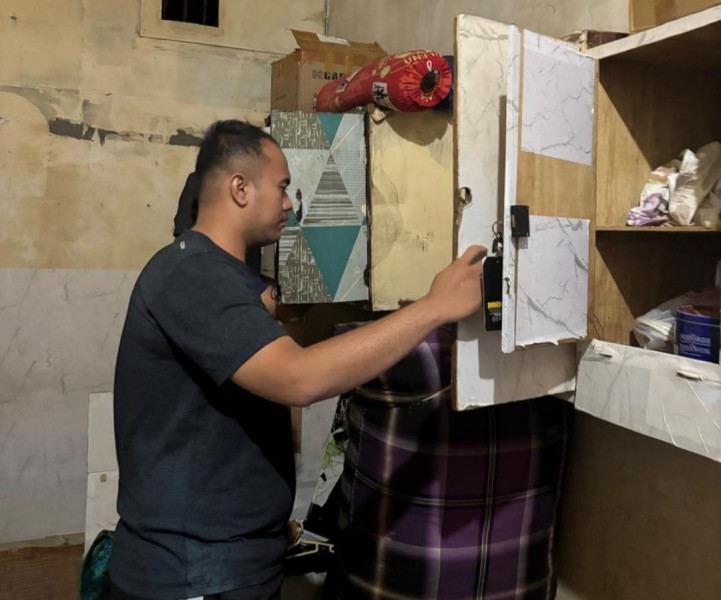 Penggeledahan dilakukan secara sistematis dan menyeluruh, mencakup tempat tidur, lemari pakaian, ventilasi, hingga area tersembunyi lainnya.