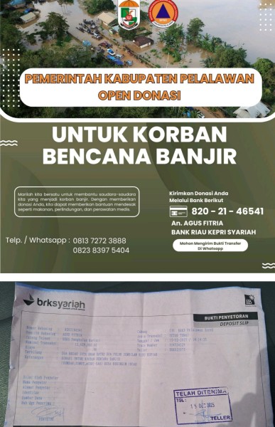 Seluruh dana tersebut telah disalurkan melalui Badan Penanggulangan Bencana Daerah (BPBD) Kabupaten Pelalawan, dengan bukti setoran melalui rekening: