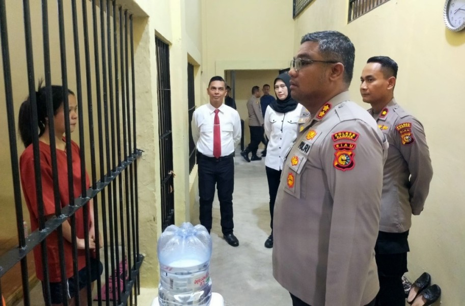 Dalam pengecekan itu, Kapolres Kampar meninjau langsung kondisi ruang tahanan, jumlah tahanan, kebersihan Rutan, serta kesiapsiagaan petugas jaga.