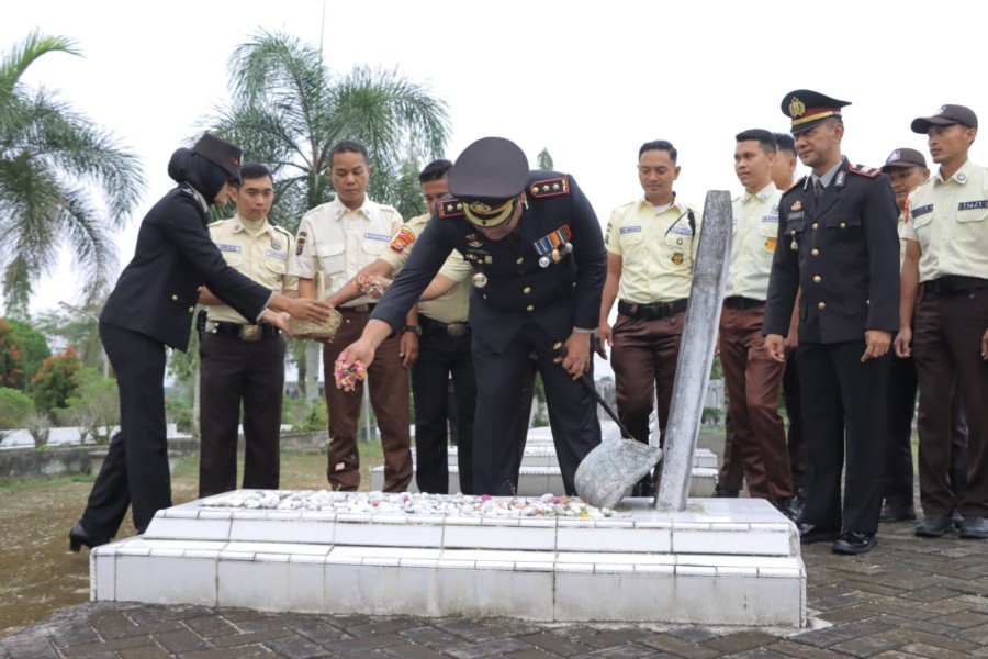 Kapolres Kampar AKBP Boby Ramadhan Putra Subayang S.I.K memimpin langsung upacara ziarah dan tabur bunga di Taman Makam Pahlawan (TMP) Kusuma Eka Bakti, Bangkinang, Selasa (6/1/2026).