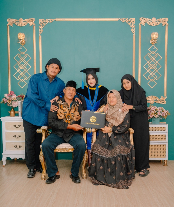 Prosesi wisuda yang berlangsung di Gedung Student Center Universitas Riau sejak pukul 07.00 WIB itu menjadi momen bersejarah bagi Helis dan keluarga. Putri kedua dari pasangan Suparto dan Supriyati, warga Desa Beringin Indah, ini hadir didampingi kedua orang tua serta keluarga besar dari Desa Surya Indah, Kecamatan Pangkalan Kuras, Kabupaten Pelalawan.