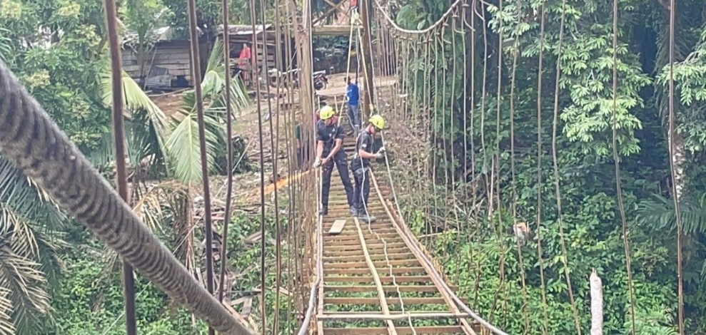 Kondisi jembatan yang sebelumnya mulai rapuh dan bergoyang kini perlahan berganti wajah. Tim dari Polda Riau dan Polres Kuansing bersama tenaga ahli bekerja dengan penuh ketelitian, memastikan setiap jengkal lantai jembatan dan kekuatan sling baja mampu menopang beban masa depan warga dengan lebih aman.