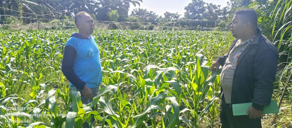 PEKANBARU,(Riausindo.com) – Komitmen Polri dalam mendukung program ketahanan pangan terus diwujudkan di lapangan. Kali ini, jajaran Polsek Bukitraya melakukan pengecekan langsung progres lahan jagung pipil milik Kelompok Tani Prima Jaya di Jalan Alamanda I RT 03/02, Kelurahan Perhentian Damai, Kecamatan Marpoyan, Kota Pekanbaru, Sabtu (21/2/2026) pagi.