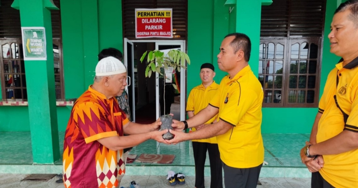 Setelah kegiatan bersih-bersih selesai, dilakukan penyerahan bibit pohon kepada pengurus masjid untuk ditanam di lingkungan sekitar.