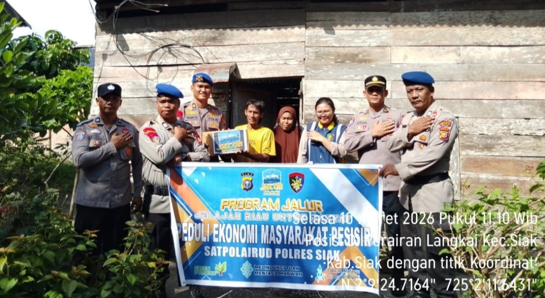 SIAK,(Riausindo.com) – Satuan Polisi Perairan dan Udara (Sat Polairud) Polres Siak melaksanakan kegiatan peduli ekonomi masyarakat pesisir dengan turun langsung menyapa warga nelayan di perairan Kampung Langkai, Kecamatan Siak, Kabupaten Siak, Selasa (10/3/2026).