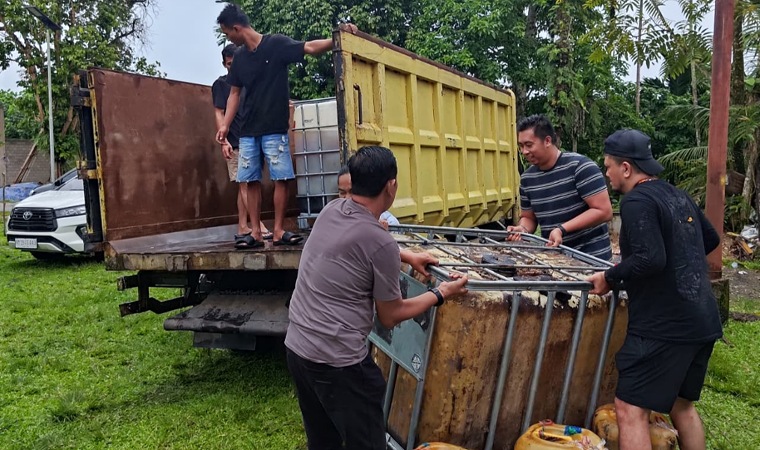 Rinciannya terdiri dari dua tangki berkapasitas masing-masing 1.000 liter, satu tangki berkapasitas 800 liter, serta puluhan jerigen berisi biosolar.