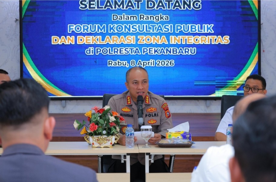 Pekanbaru,(Riausindo.com) – Polresta Pekanbaru menggelar Forum Konsultasi Publik Tahun 2026 yang dirangkaikan dengan Deklarasi Zona Integritas menuju Wilayah Birokrasi Bersih dan Melayani (WBBM).