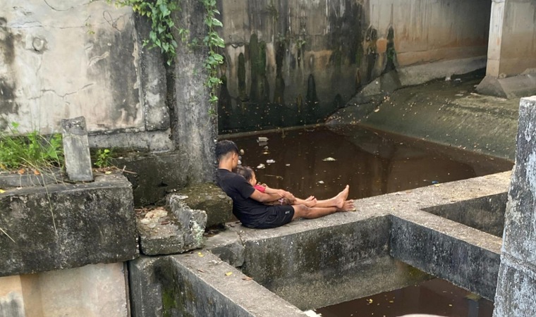 Seorang pria diduga hendak melakukan aksi bunuh diri dalam kondisi emosional sambil membawa anak kecil.