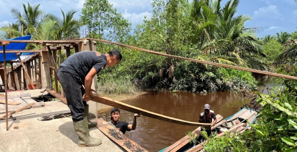 Indragiri Hilir, (Riausindo.com) – Satgas Darurat Pembangunan Infrastruktur Jembatan Merah Putih Presisi Tahap II Wilkum Polres Inhil terus melanjutkan pengerjaan jembatan di Dusun Pangkalan Baru, Desa Tasik Raya, Kecamatan Batang Tuaka, Minggu (26/4/2026).