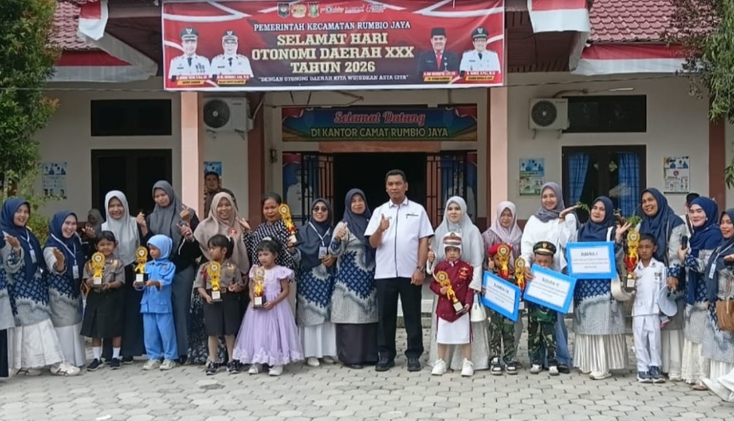 KAMPAR,(Riausindo.com) – Dalam rangka memperingati Hari Anak Nasional (HAN) 2026, Pemerintah Kecamatan Rumbio Jaya bersama Koordinator Wilayah (Korwil) Pendidikan Kecamatan Rumbio Jaya menggelar berbagai kegiatan lomba hingga karnaval yang dipusatkan di Kantor Camat Rumbio Jaya, Rabu (29/4/2026).