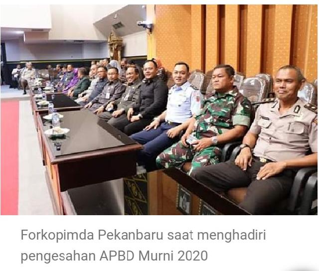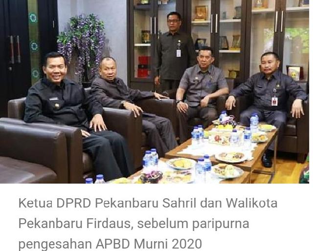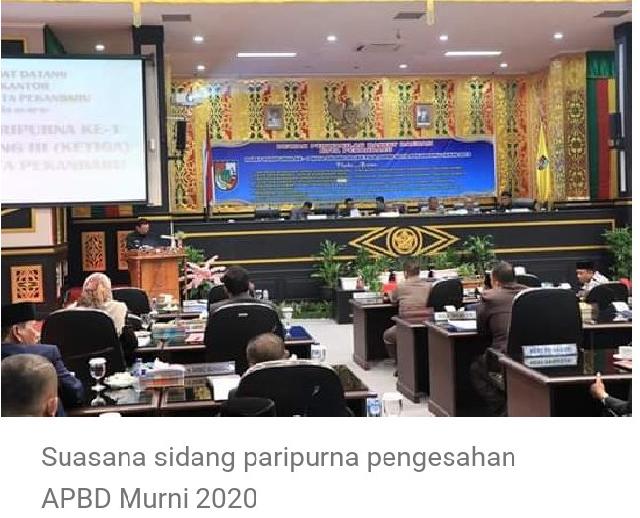 Paripurna pengesahan APBD murni 2020 yang dipimpin Ketua DPRD Pekanbaru Sahril dan Walikota Pekanbaru Firdaus ini turut dihadiri anggota DPRD dan pejabat di lingkungan pemerintah kota.
