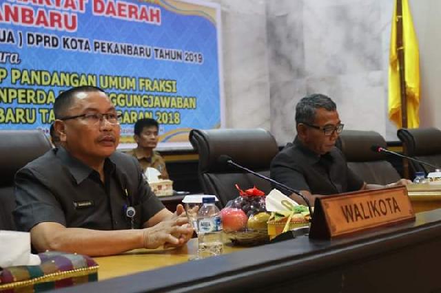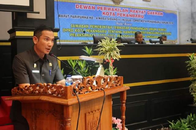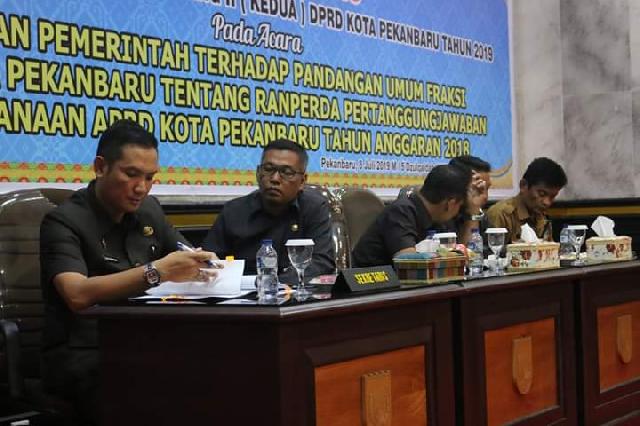 Paripurna yang berlangsung di ruang rapat Paripurna Gedung DPRD setempat, dipimpin Wakil Ketua DPRD Pekanbaru Jhon Romi Sinaga didampingi Wakil Ketua DPRD Nofrizal dan Asisten III Bidang Administrasi Umum Setdako Pekanbaru Baharuddin.