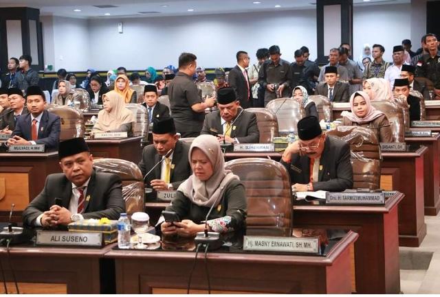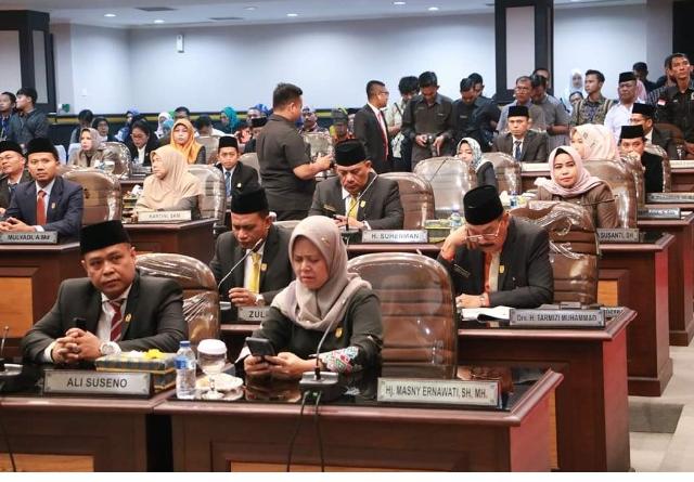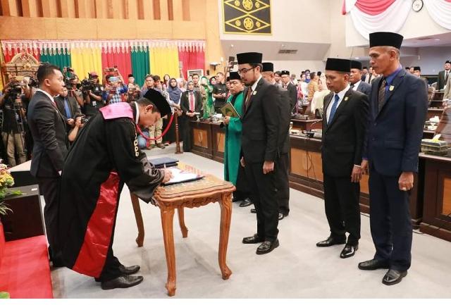 PEKANBARU - Setelah pengucapan sumpah jabatan, DPRD Pekanbaru resmi memiliki Pimpinan defenitif periode 2019-2024, Selasa (1/9/2019). Untuk jabatan Ketua DPRD Pekanbaru dijabat oleh Hamdani MS SIP dari PKS, Wakil Ketua oleh Ginda Burnama ST dari Partai Gerindra, Tengku Azwendi Fajri SE dari Partai Demokrat, dan Ir Noprizal MM dari