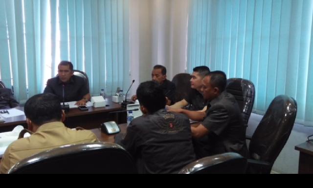 Ketua Komisi III DPRD Pekanbaru Zulfan Hafiz ( Kanan) memimpin hearing bersama guru honor dan disdik pekanbaru
