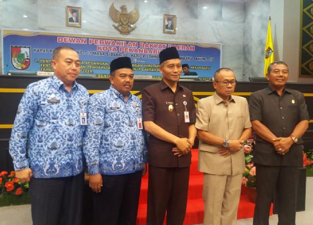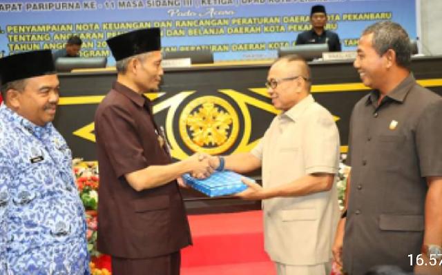 Penyampaian ini dilaksanakan pada saat rapat Paripurna yang dipimpin Ketua DPRD pekanbaru Sahril SH. Disampaikan oleh Wakil Walikota Pekanbaru Ayat Cahyadi SSi.