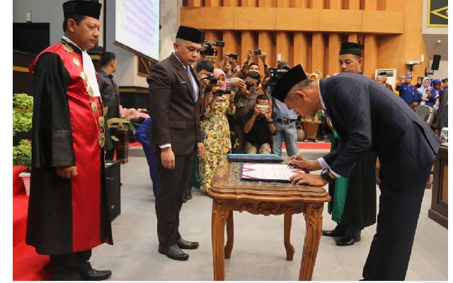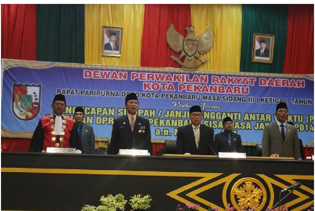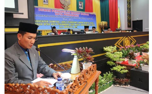 PEKANBARU - Bertempat di ruang paripurna, Ir Nofrizal resmi menjabat Wakil Ketua DPRD Pekanbaru sisa jabatan 2014-2019. Pengambilan sumpah/janji Pengganti Antar Waktu (PAW) Pimpinan DPRD Kota Pekanbaru sisa Jabatan 2014-2019 ini dilaksanakan dalam pada Rapat Paripurna DPRD Pekanbaru pada Jumat (28/12/2018).