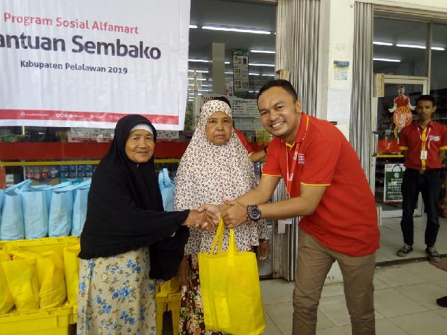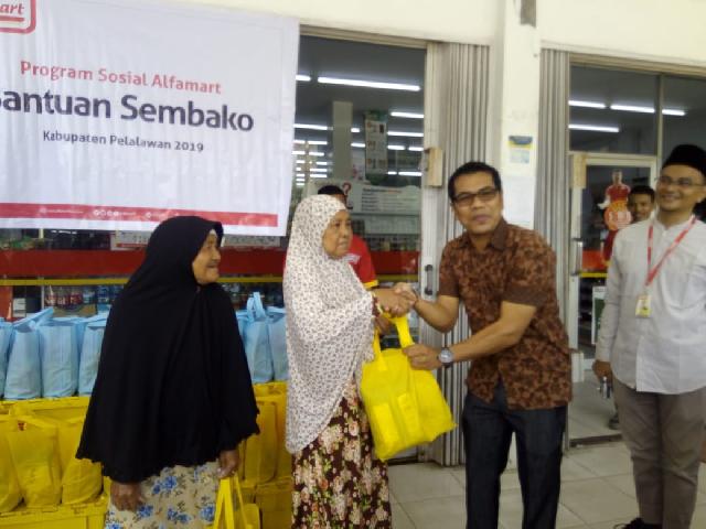 SEIKIJANG RS - Menghadapi bulan suci Ramadhan, PT Sumber Alfaria Triajaya Tbk (Alfamart) menggelar bakti sosial berupa bantuan paket