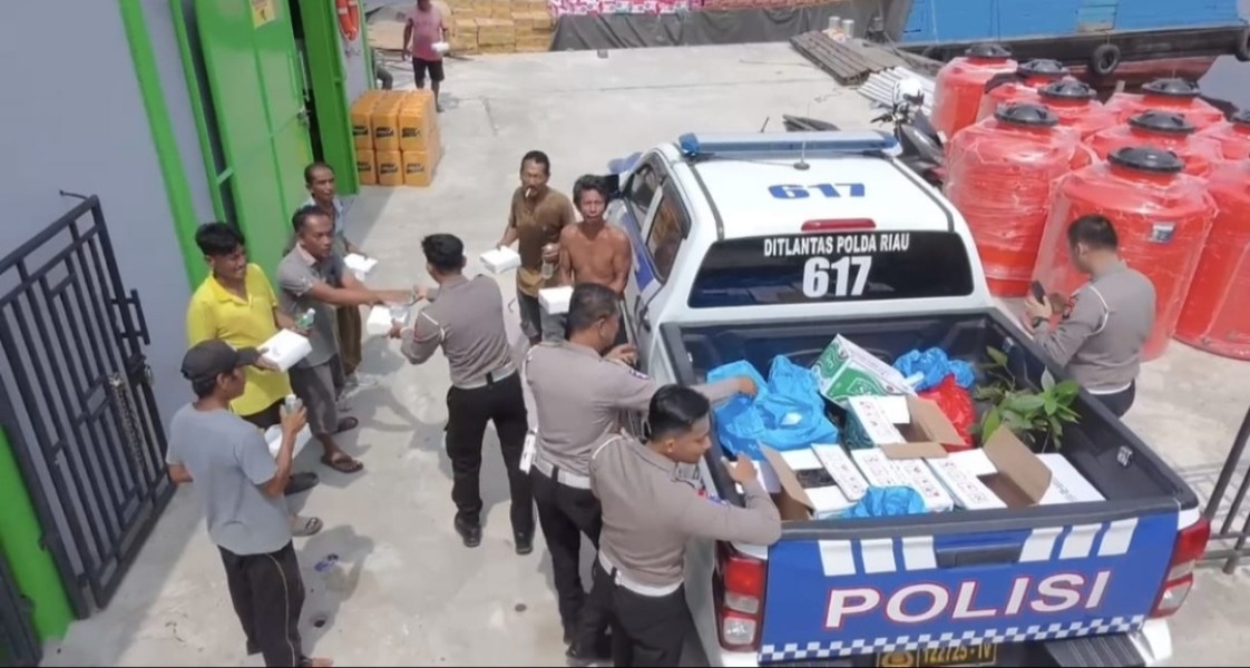Polantas Polda Riau Turun ke Jalan, Bagikan Makanan dan Bibit Pohon di Jumat Barokah