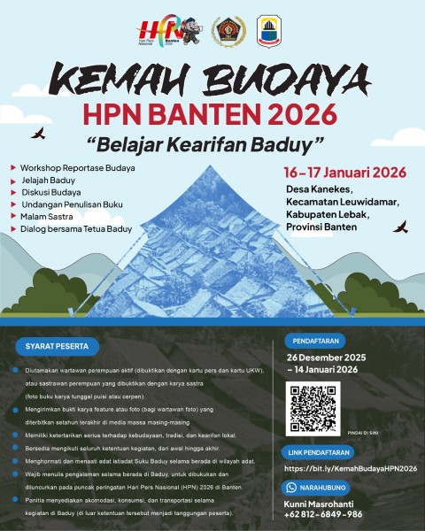 Riausindo – LEBAK – Panitia Hari Pers Nasional (HPN) Banten 2026 akan menggelar Kemah Budaya HPN Banten 20.