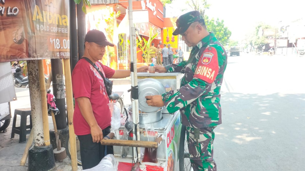 Motivasi Pelaku UMKM, Babinsa Kemlayan Beri Dukungan kepada Penjual Cilok